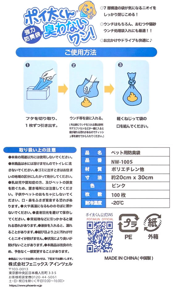 フェニックス・アインツェル ポイ太くん臭わないワン S 100枚 NW-100S 1個(ご注文単位1個)【直送品】