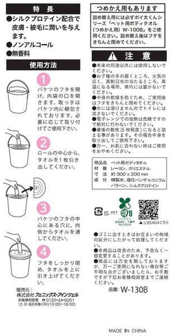 フェニックス・アインツェル ペット用 ボディタオル 130枚 W-130B 1個(ご注文単位1個)【直送品】