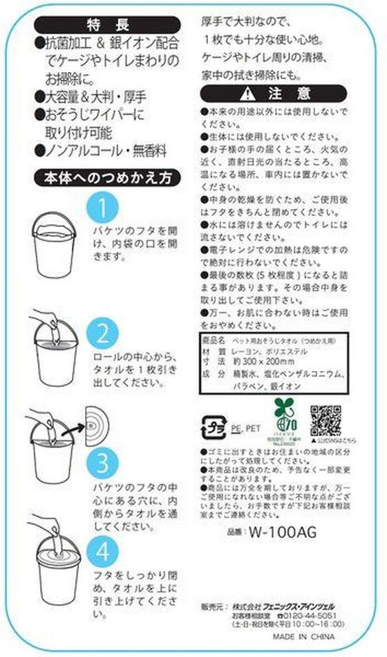 フェニックス・アインツェル ペット用 おそうじタオル 詰替100枚 W-100AG 1個(ご注文単位1個)【直送品】