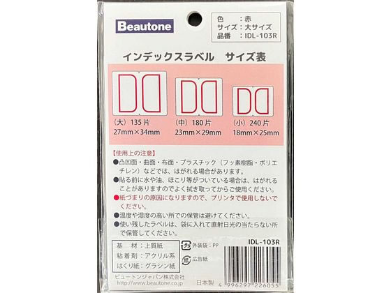 ビュートン インデックスラベル 大 赤 15シート入 IDL-103R 1パック(ご注文単位1パック)【直送品】