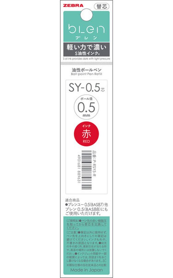 ゼブラ ブレンユー替芯 SY-0.5芯 赤 P-RSY5-R 1本(ご注文単位1本)【直送品】