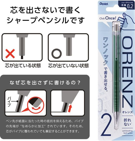ぺんてる ORENZ(オレンズ)0.2mm ダークグリーン XPP502-RD 1本(ご注文単位1本)【直送品】