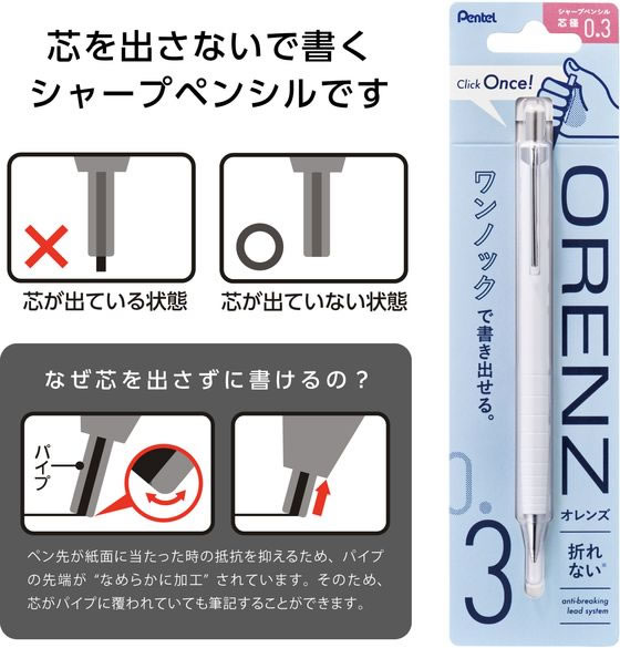 ぺんてる ORENZ(オレンズ)0.3mm ホワイト XPP503-RW 1本(ご注文単位1本)【直送品】