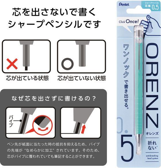 ぺんてる ORENZ(オレンズ)0.5mm オーシャングリーン XPP505-RD3 1本(ご注文単位1本)【直送品】