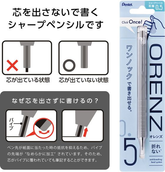 ぺんてる ORENZ(オレンズ)0.5mm グレー XPP505-RN 1本(ご注文単位1本)【直送品】