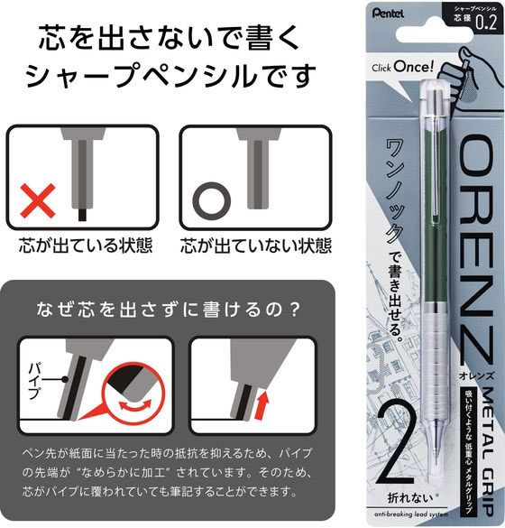 ぺんてる オレンズメタルグリップ 0.2 ダークグリーン XPP1002G2-RD 1本(ご注文単位1本)【直送品】