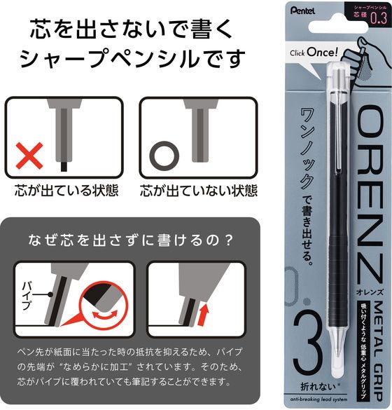 ぺんてる オレンズメタルグリップ 0.3 ブラック XPP1003G2-RA 1本(ご注文単位1本)【直送品】