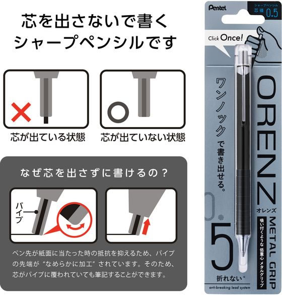 ぺんてる オレンズメタルグリップ 0.5 ブラック XPP1005G2-RA 1本(ご注文単位1本)【直送品】