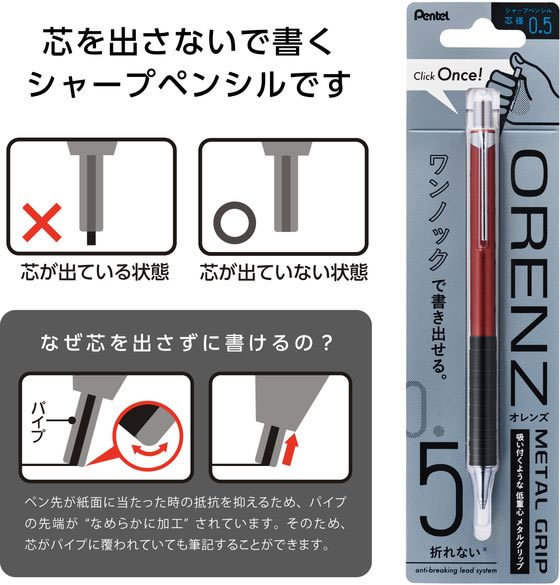 ぺんてる オレンズメタルグリップ 0.5 レッド XPP1005G2-RB 1本(ご注文単位1本)【直送品】