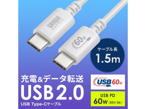 サンワサプライ USB 2.0 Type-Cケーブル 1.5m ホワイト KU-CCP6015W 1本(ご注文単位1本)【直送品】