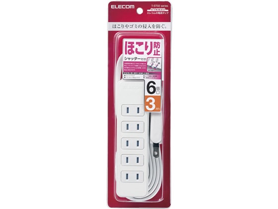 エレコム シャッタータップ 2P式6個口 3m ホワイト T-ST02-22630WH 1個(ご注文単位1個)【直送品】