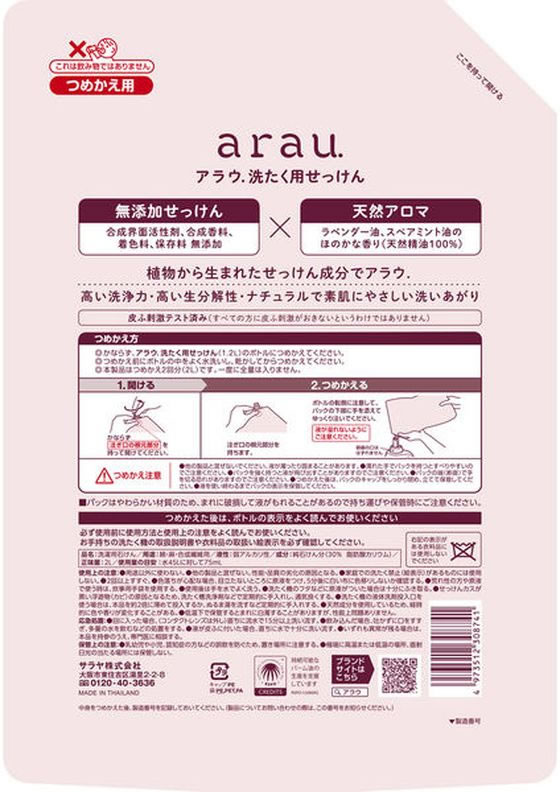 サラヤ アラウ.洗たく用せっけん 詰替 2L 6個 1箱(ご注文単位1箱)【直送品】