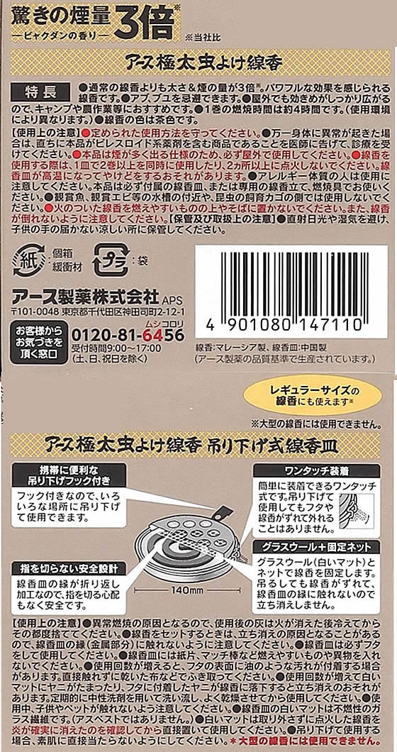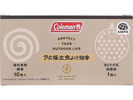 アース製薬 アース極太虫よけ線香コールマン 線香皿付 箱入 10巻 1セット(ご注文単位1セット)【直送品】