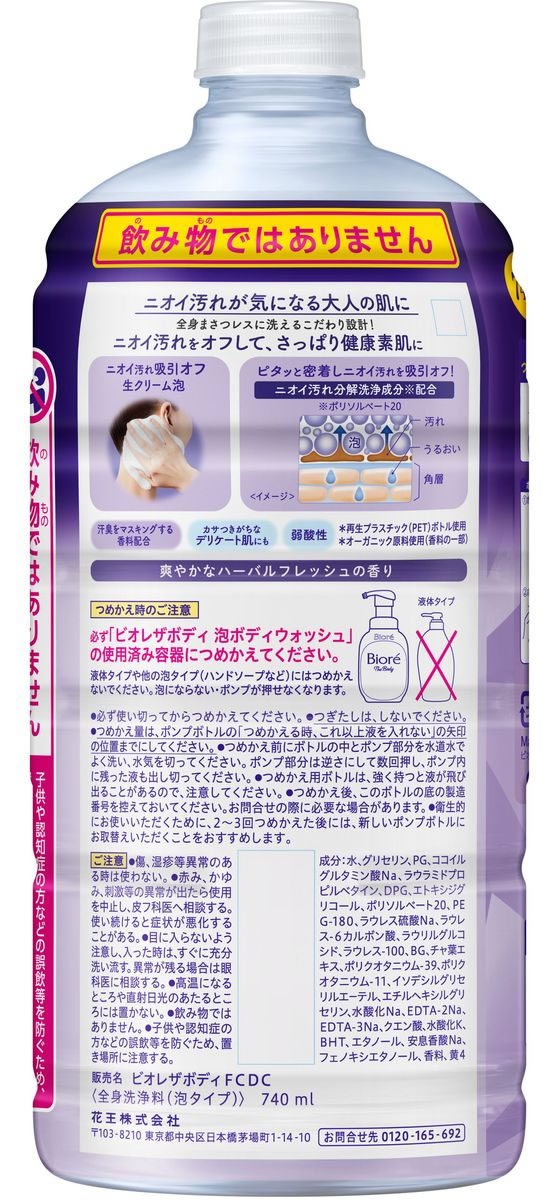 KAO ビオレ ザ ボディ 泡タイプ ディープクリア 詰替 740mL 1個(ご注文単位1個)【直送品】