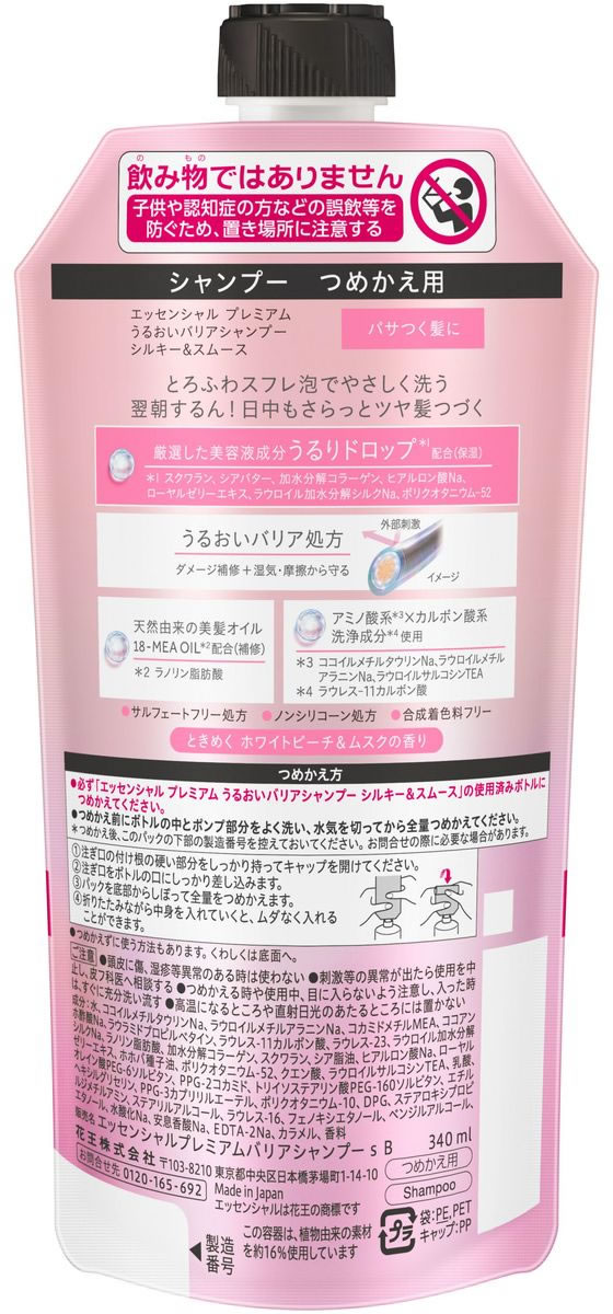 KAO エッセンシャル プレミアム バリアシャンプー シルキー 替え 340mL 1個(ご注文単位1個)【直送品】