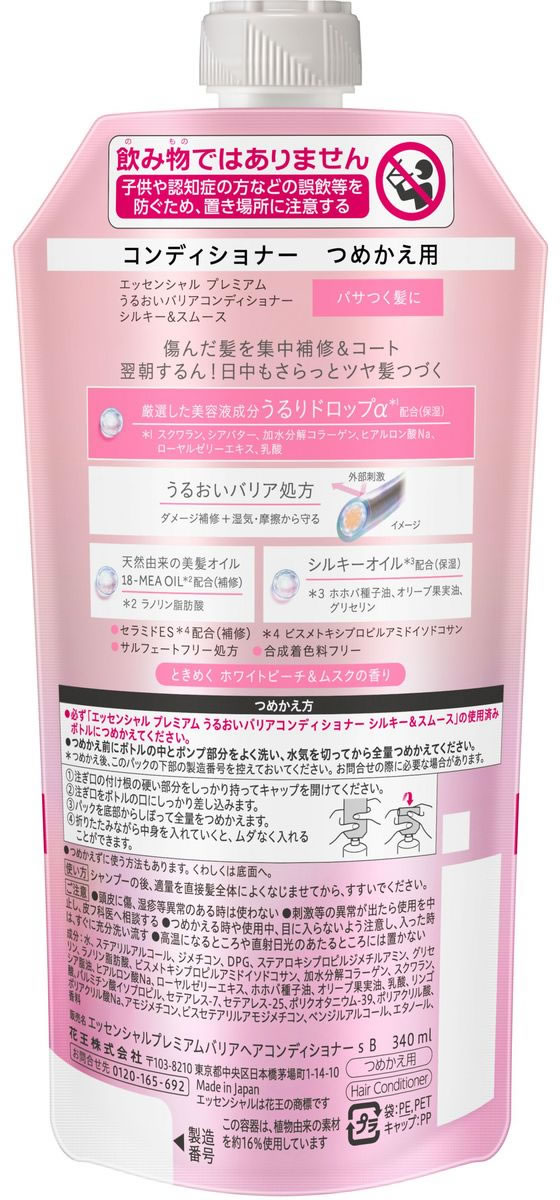KAO エッセンシャル プレミアム バリアコンディショナー シルキー 替え 340mL 1個(ご注文単位1個)【直送品】