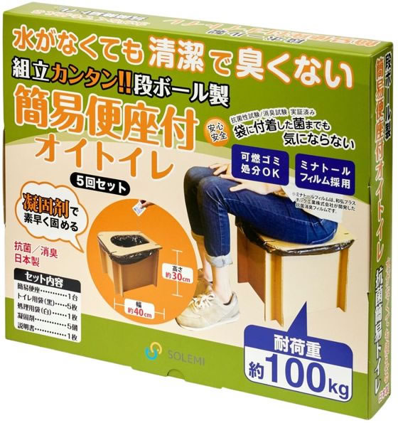 和弘プラスチック工業 段ボール製 簡易便座付オイトイレ 5回セット 1セット(ご注文単位1セット)【直送品】