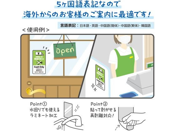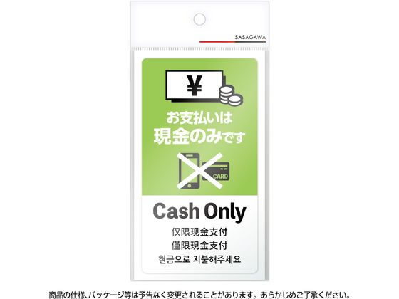 ササガワ 注意喚起ステッカー 現金支払いのみ 24-549 1冊(ご注文単位1冊)【直送品】