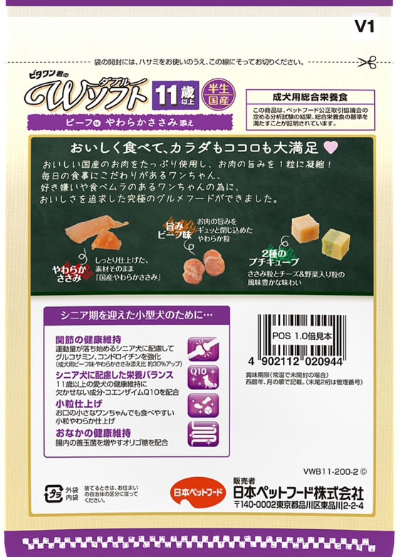 日本ペットフード Wソフト ビーフ味やわらかささみ 11歳 200g 1個(ご注文単位1個)【直送品】
