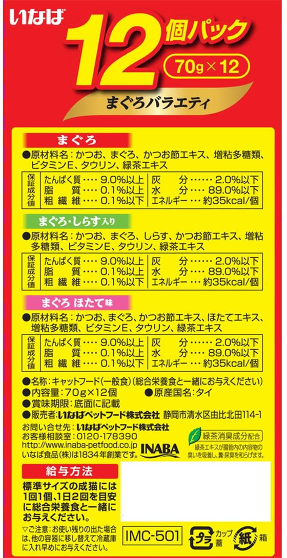 いなばペットフード 金のだしカップ まぐろバラエティ 70g×12個 1箱(ご注文単位1箱)【直送品】