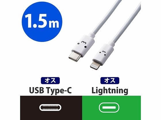 エレコム USB-C to Lightningケーブル 1.5m MPA-FCL15WF 1個(ご注文単位1個)【直送品】