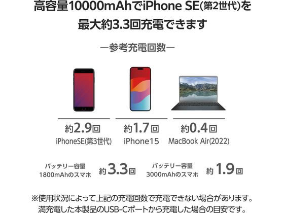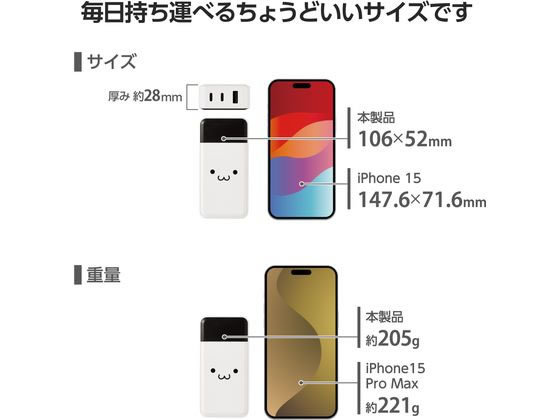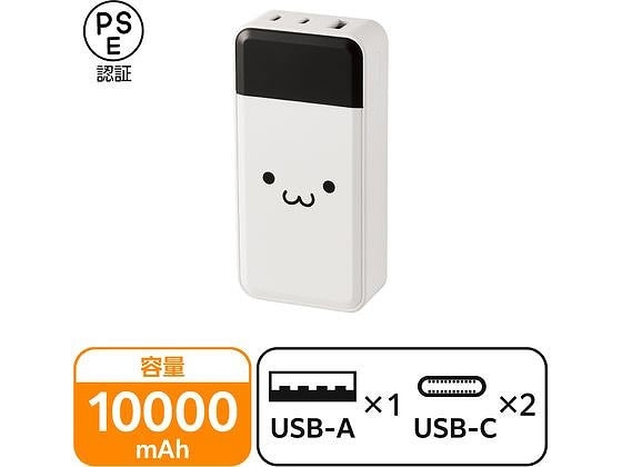 エレコム モバイルバッテリー 10000mAh 残量 顔 DE-C51L-10000WF 1個(ご注文単位1個)【直送品】