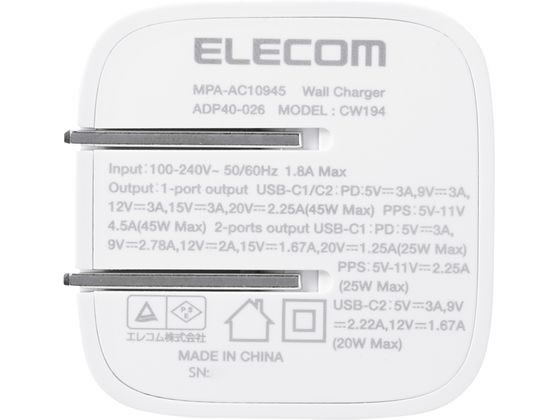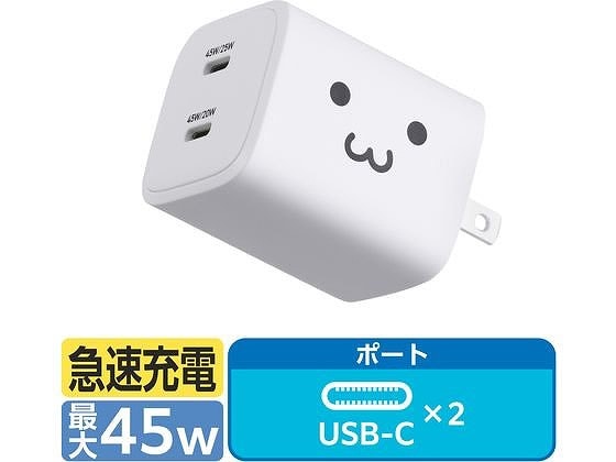 エレコム USB充電器 45W C×2 しろちゃん MPA-AC10945WF 1個(ご注文単位1個)【直送品】