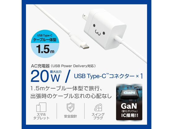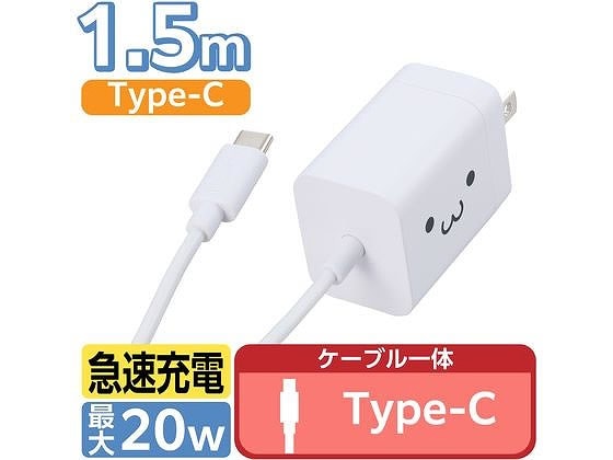 エレコム Type-C充電器 一体型 1.5m シロチャン MPA-ACCP6920WF 1個(ご注文単位1個)【直送品】