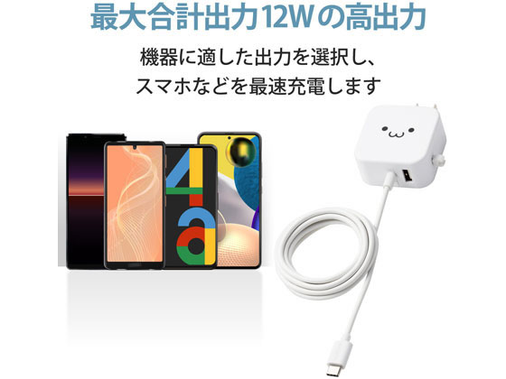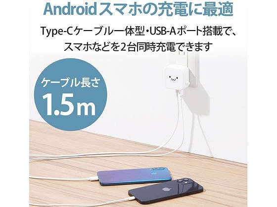 エレコム AC充電器 TypeC ケーブル一体型 1.5m MPA-ACC22WF 1個(ご注文単位1個)【直送品】