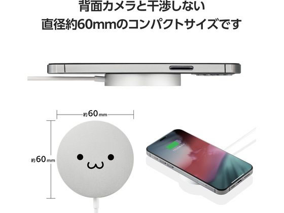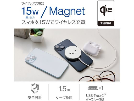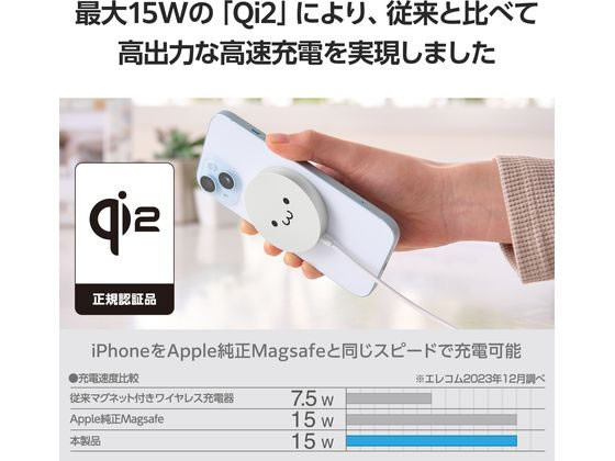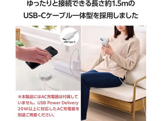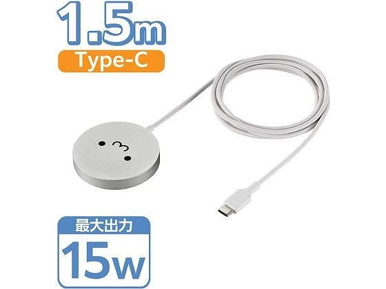 エレコム ワイヤレス充電器 Qi2 ケーブル一体 1.5m シロチャン W-MA04WF 1個(ご注文単位1個)【直送品】
