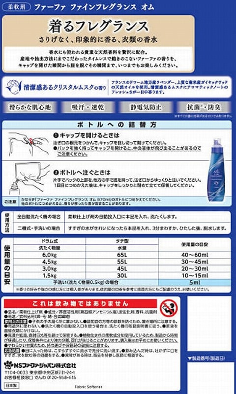 NSファーファジャパン ファーファファインフレグランス オム 詰替用 1400mL 1個(ご注文単位1個)【直送品】