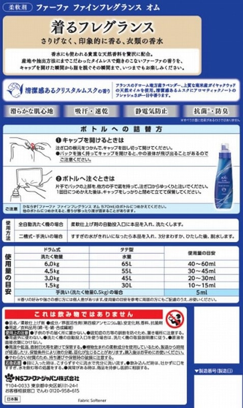 NSファーファJ ファインフレグランス 柔軟剤 オム 780mL 詰替 1個(ご注文単位1個)【直送品】