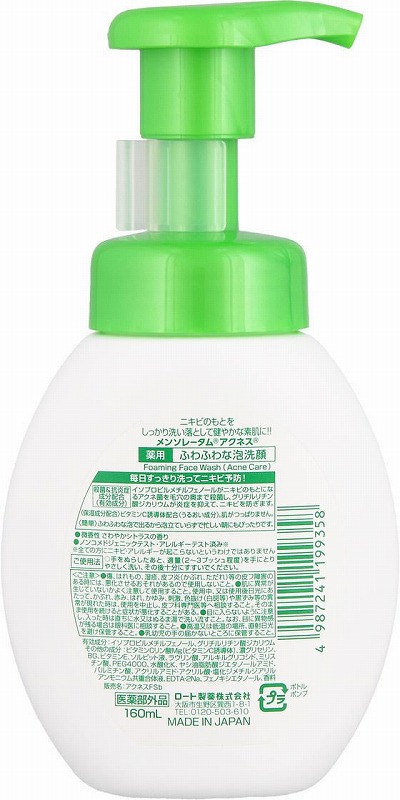 ロート製薬 メンソレータムアクネス薬用 ふわふわな泡洗顔 本体160mL 1個(ご注文単位1個)【直送品】