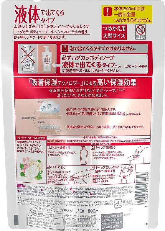 ライオン hadakara ボディソープ フレッシュフローラル 詰替 大型 800mL 1個(ご注文単位1個)【直送品】