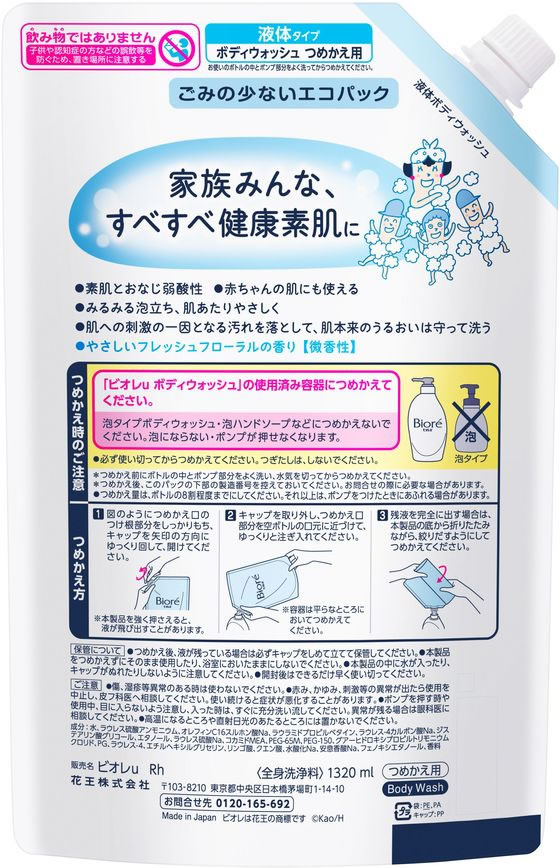 KAO ビオレu プレーンつめかえ1.32L ×6個 1箱(ご注文単位1箱)【直送品】