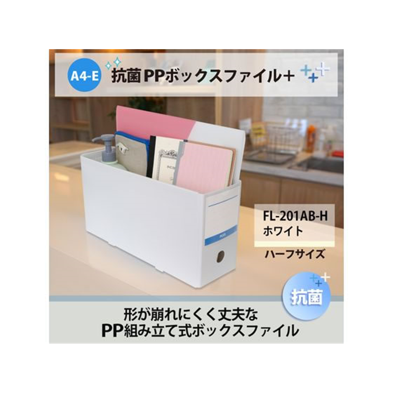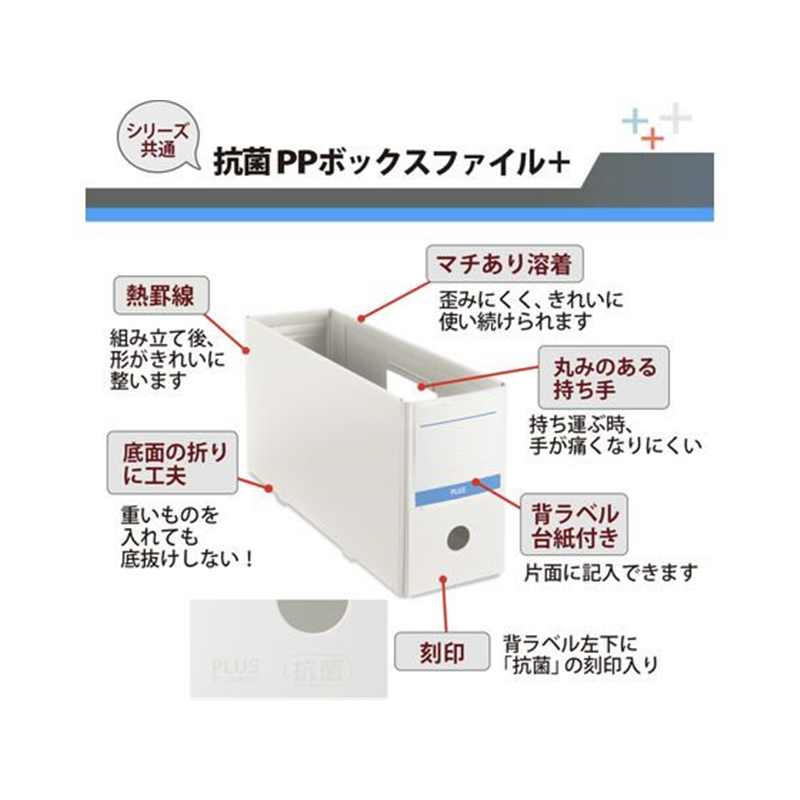 プラス 収納ボックス PPボックスファイル ハーフ 抗菌 A4 ホワイト 76521 1冊(ご注文単位1冊)【直送品】