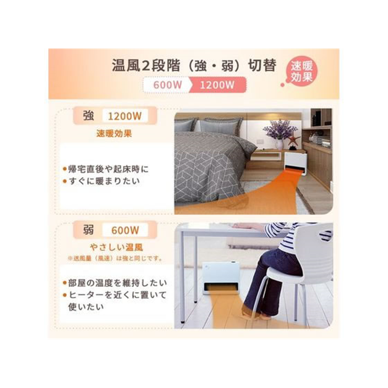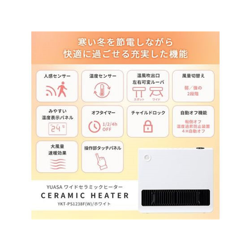 ユアサプライムス ワイドセラミックヒーター YKT-PS1238FM(W) 1台(ご注文単位1台)【直送品】