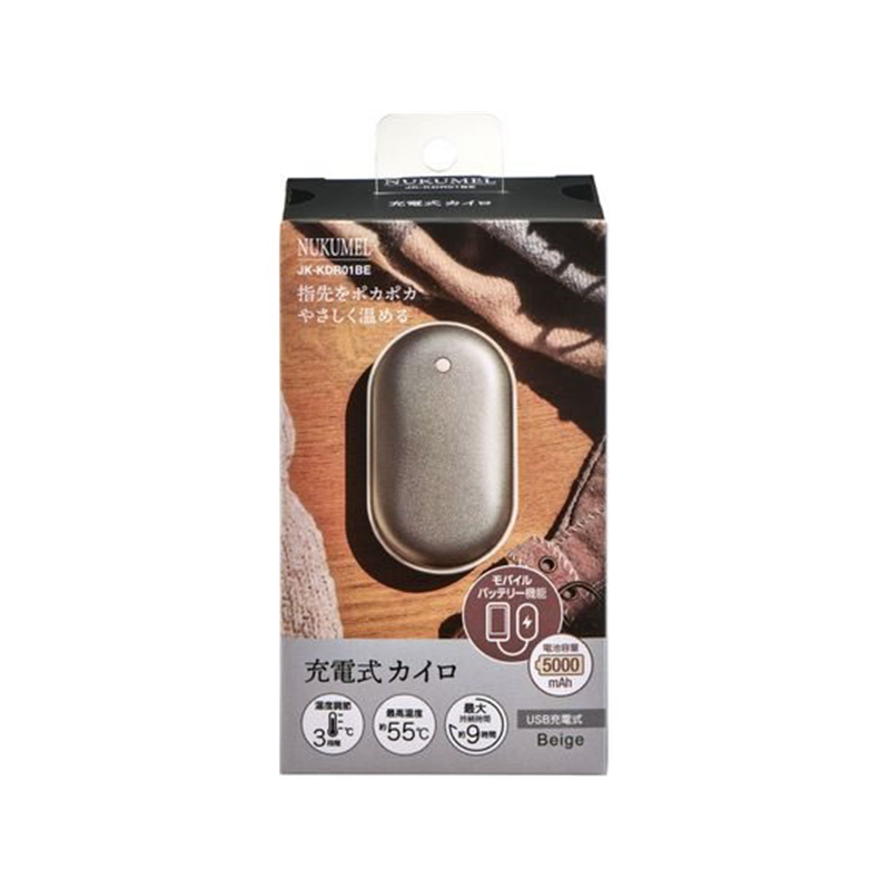 朝日電器 充電式カイロ ベージュ JK-KDR01BE 1個(ご注文単位1個)【直送品】