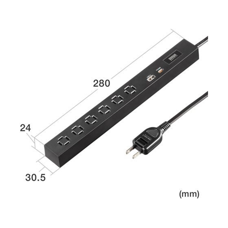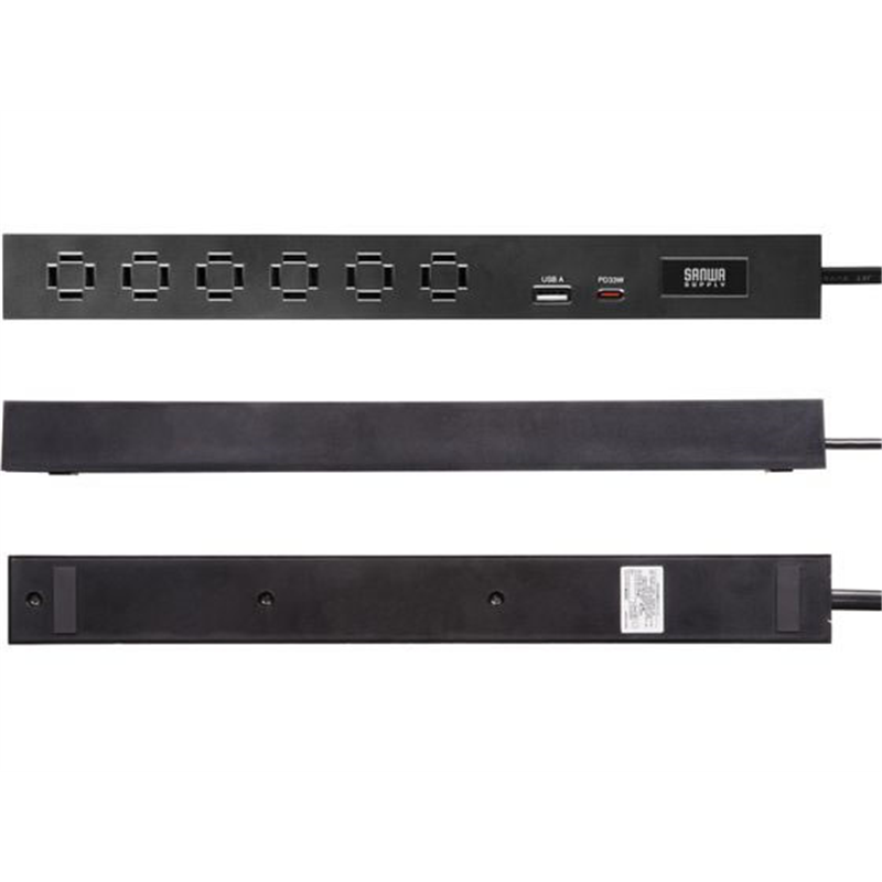 サンワサプライ スリムタップ 1.5m・ブラック TAP-SLIM6UC-15BK 1個(ご注文単位1個)【直送品】