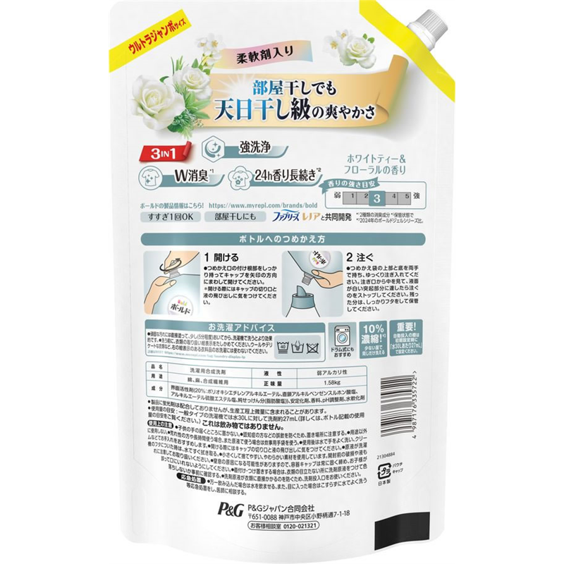 P&Gジャパン ボールド ジェル ホワイトティー 詰替 UJ 1580G 1個(ご注文単位1個)【直送品】