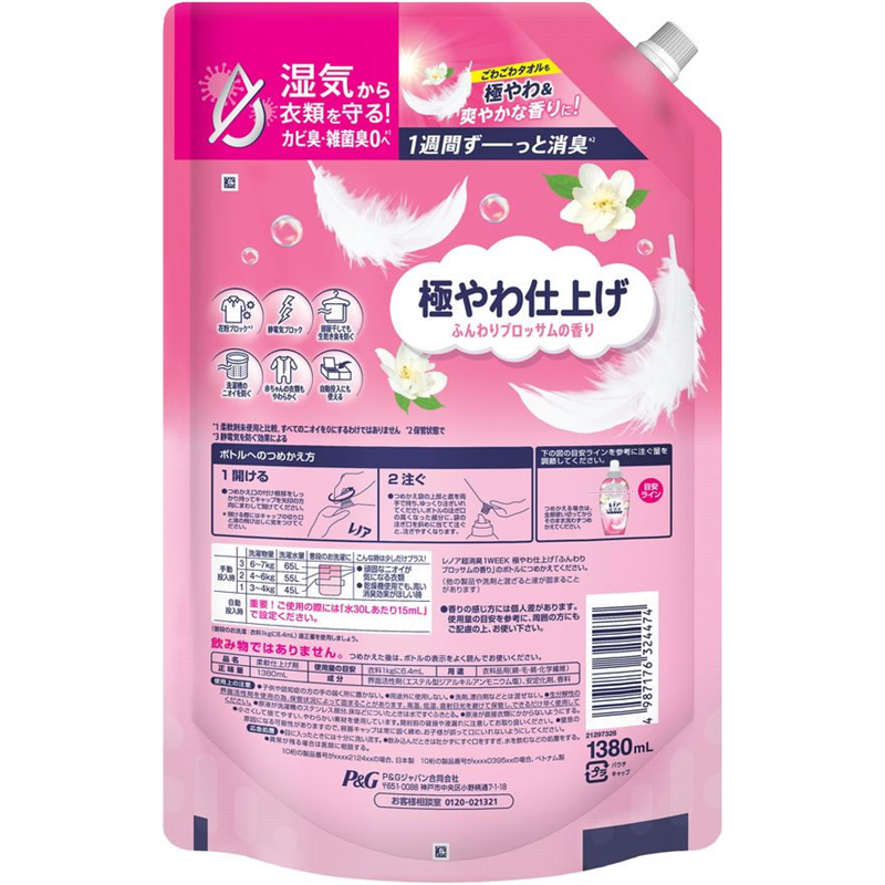 P&G レノア超消臭1WEEK 極やわ ブロッサム 替 超特大1380mL 1個(ご注文単位1個)【直送品】