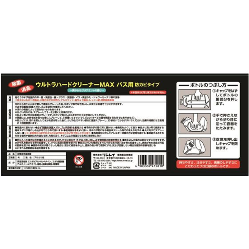 リンレイ ウルトラハードクリーナー バス用 防カビ MAX 4L 1個(ご注文単位1個)【直送品】