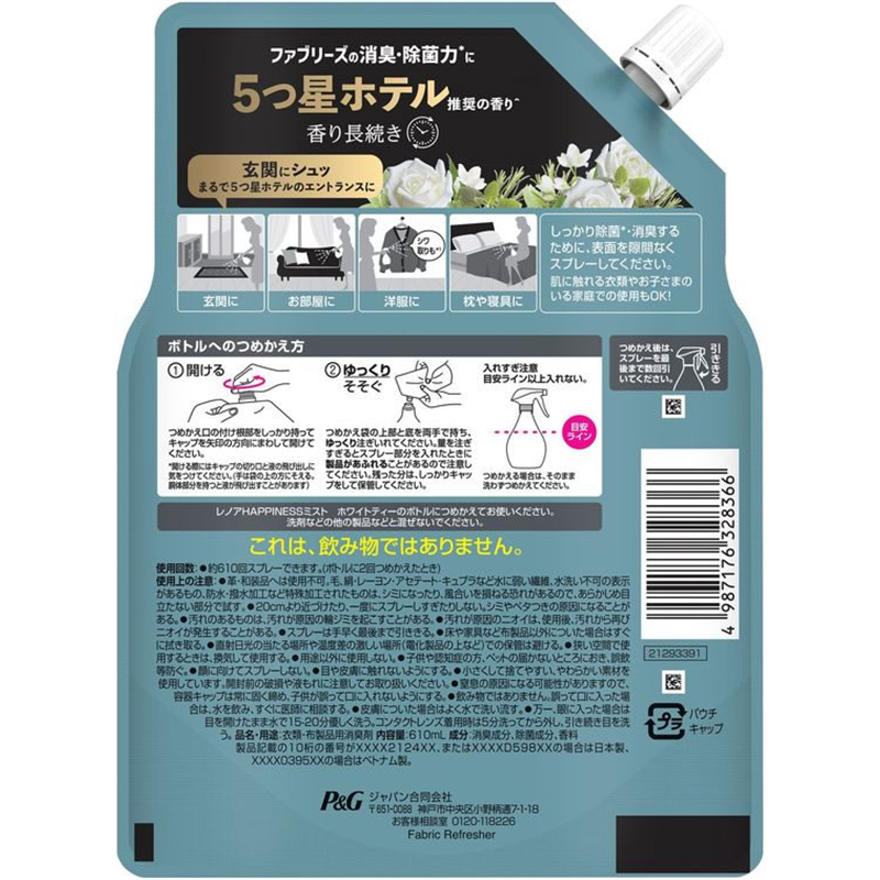 P&G レノアハピネスミスト ホワイトティー 特大 610ML 1個(ご注文単位1個)【直送品】