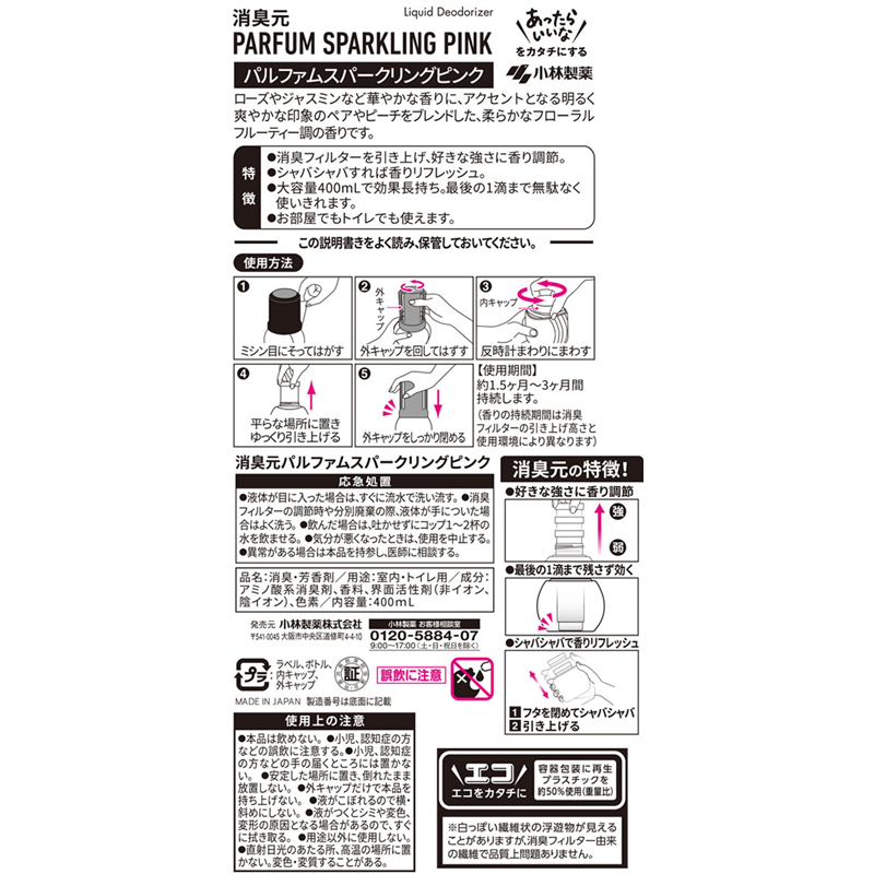 小林製薬 消臭元パルファム スパークリングピンク 400mL 1個(ご注文単位1個)【直送品】