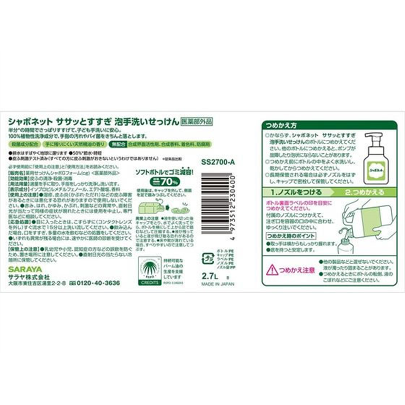 サラヤ シャボネット ササッとすすぎ 替 2.7L×3個 1箱(ご注文単位1箱)【直送品】