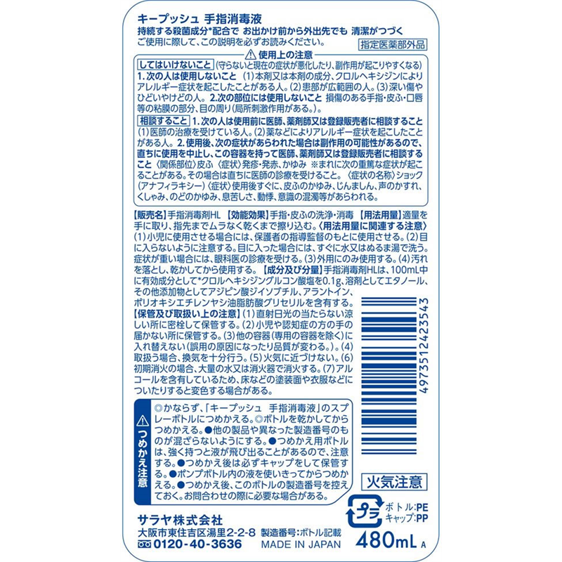 サラヤ キープッシュ 手指消毒液 詰替 480mL 1個(ご注文単位1個)【直送品】