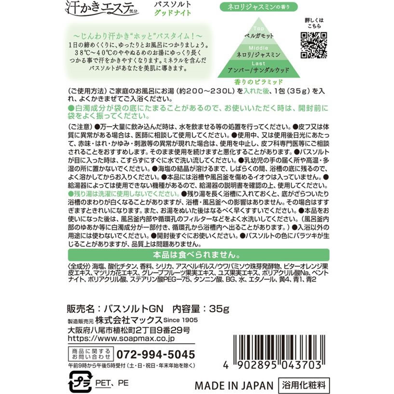 マックス 汗かきエステ気分 分包グッドナイト 1個(ご注文単位1個)【直送品】
