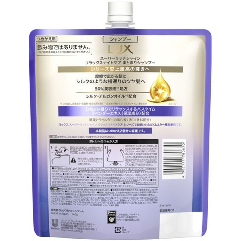 ユニリーバ ラックス スーパーリッチシャイン リラックスナイトケア シャンプー 替560g 1個(ご注文単位1個)【直送品】