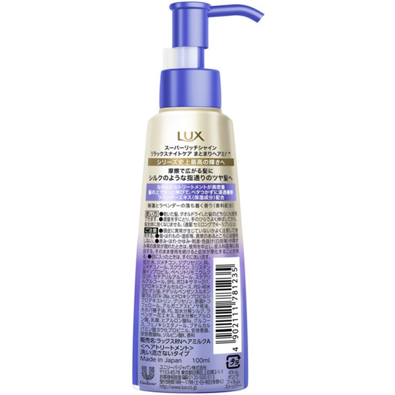 ユニリーバ ラックス スーパーリッチシャイン リラックスナイトケア ヘアミルク 100mL 1個(ご注文単位1個)【直送品】