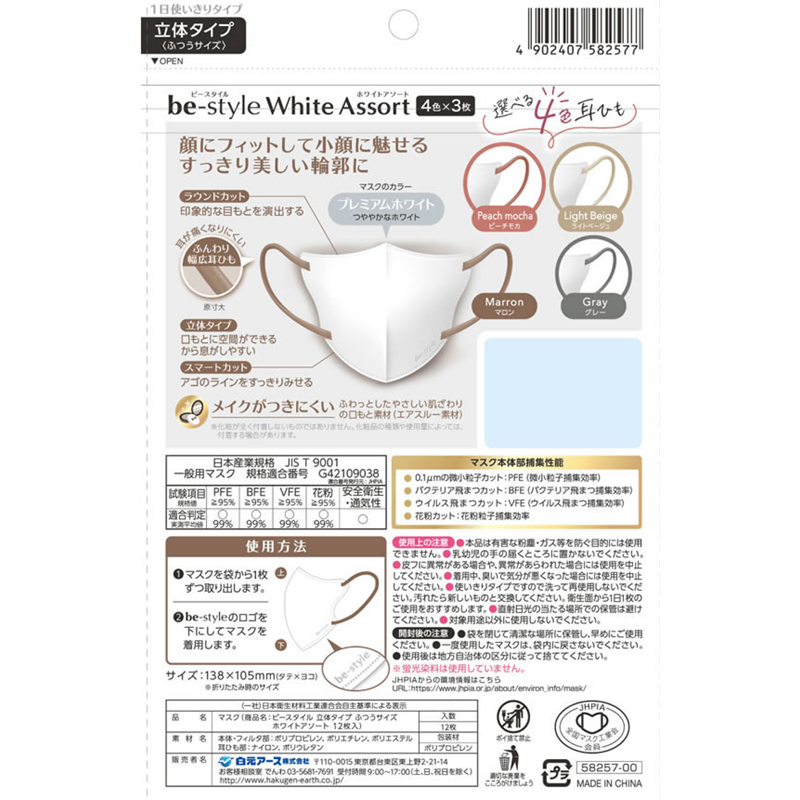 白元アース ビースタイル立体タイプふつうホワイトアソート12枚入 1個(ご注文単位1個)【直送品】